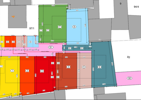 Insgesamt werden auf dem ca. 1580,00 m² großen Grundstück 1 Doppelhaus und 2 Reihenhäuser realisiert.