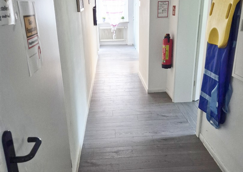 Die Wohnung ist insgesamt in einem guten Zustand. Die Wände sind weiß gestrichen und die Böden bestehen überwiegend aus pflegeleichtem Laminat. In der Küche und im Bad sind Fliesen verlegt. Die Küche ist komfortabel über den Flur zu erreichen. Große Fenster sorgen für viel Tageslicht. Die Heizungsanlage und Warmwasseranlage des Hauses wurde erst 2025 erneuert.