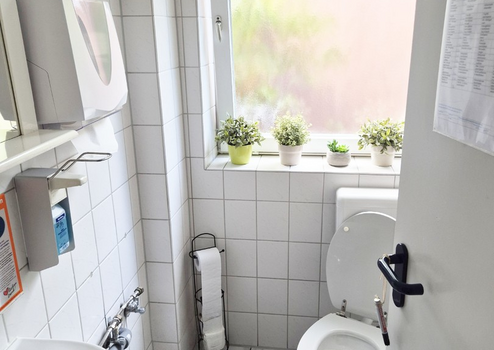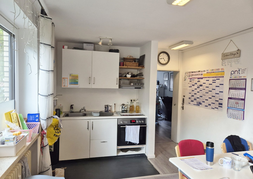 Die Wohnung ist aktuell noch an einen Pflegedienst vermietet und kann frühestens ab dem 01.01.2026 übernommen werden. Das vorhandene Badezimmer wird vor Einzug noch saniert und eine vollständig neue Küche eingebaut - im auf dem Grundriss eingezeichneten Raum (Küche 10m²). Die auf den Bildern abgebildete Küche ist nur eine provisorische "Büroküche" des aktuellen Mieters.