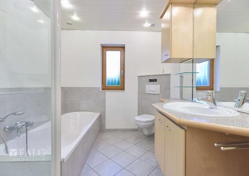 Linker Hand gelangen Sie in das geräumige Badezimmer mit Dusche und Wanne.