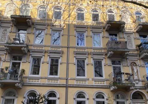 Die Wohnung befindet sich in einem Jugendstilbau aus dem Jahr 1884, der mit seinen Stuckverzierungen und einer eindrucksvollen Fassade sehr viel Charme ausstrahlt.