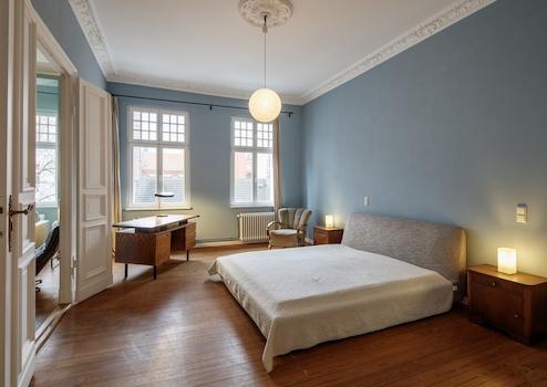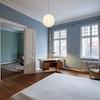 Diese perfekt geschnittene Vorderhaus-Wohnung mit Erker im 3. Stock eines Jahrhundertwende-Altbaus verfügt über viele ursprüngliche oder aufgearbeitete originale Details wie Stuckornamente, Holztüren mit Messingbeschlägen, abgezogene Holzdielen und Holzrahmen Fenster mit Isolierverglasung. Ein ausgeklügeltes Farbkonzept bringt die 3,38 m hohen Stuck-Decken besonders zu Geltung und erzeugt ein grosszügiges und edles Raumgefühl.
