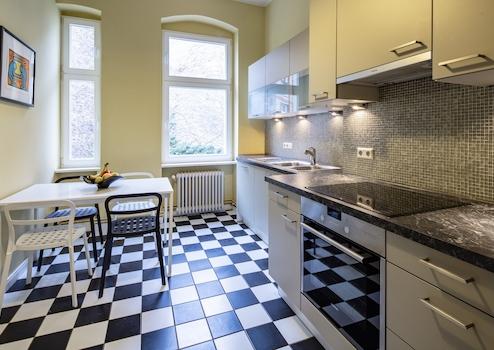 The apartment is located in one of Kreuzberg's best locations, right next to Lausitzer Platz and just a stone's throw away from the famous "Markthalle Nine". Not far from Oranienstrasse, you will be living in one of Berlin's most dynamic districts, yet in an absolutely quiet location. Berlin-Mitte, Prenzlauer Berg, and Friedrichshain are within easy reach, as is Treptower Park. The Landwehr Canal, Paul-Lincke-Ufer, and Maybachufer are just a few minutes away by bike. Numerous shops, popular restaurants, great playgrounds, daycare centers, schools, doctors' offices, and parks are located in the immediate vicinity. The nearby subway station "Görlitzer Bahnhof" and various bus routes guarantee excellent public transport connections. A perfect, lively living environment for singles, couples, and families alike.