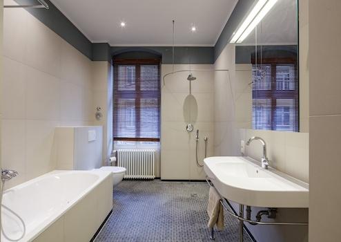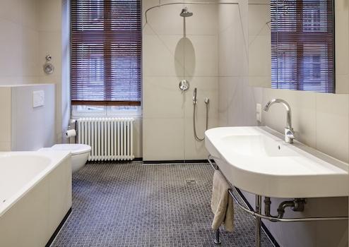 A high-quality fitted kitchen with induction hob and dishwasher, as well as a large, modern bathroom with walk-in shower, bathtub, and toilet, leave nothing to be desired in terms of technology and design.