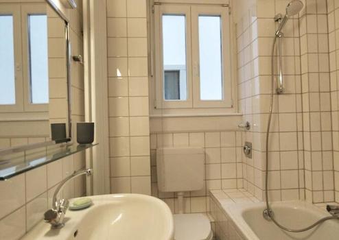 Das helle Tageslichtbadezimmer ist mit einem Wannenbad ausgestattet.