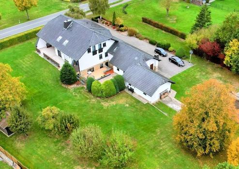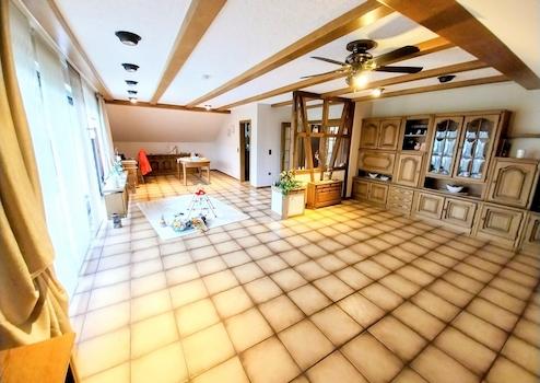 Besonderheiten sind die 6 Garagen, der gesellige (Wohn-)Keller, Fitnessraum sowie die 2022 erneuerte Öl-Zentralheizung mit Fußbodenheizung. Insgesamt stehen 9 Zimmer, 4 Bäder, 3 WCs und 3 Küchen zur Verfügung.