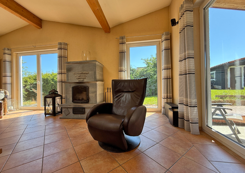 • Specksteinofen (5 kW) im Wohnzimmer für behagliche Wärme (2004)