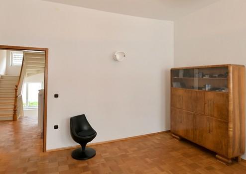 Im 1. OG befinden sich ein großer Eingangsbereich, sowie die Küche und das Esszimmer sowie ein Arbeitszimmer mit Kamin. Auf gleicher Höhe befindet sich eine große