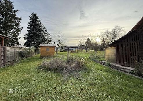 Der Garten ist eben und bietet viel Platz, befindet sich jedoch ebenso in einem Zustand, der pflegerische und gestalterische Maßnahmen erfordert. Die vorhandenen Obstbäume tragen regelmäßig Früchte. Hinter dem Grundstück grenzen Felder und Waldflächen an, sodass keine weiteren Häuser direkt anschließen.