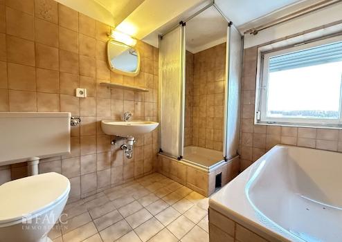 – Badezimmer im Obergeschoss mit Dusche und Badewanne