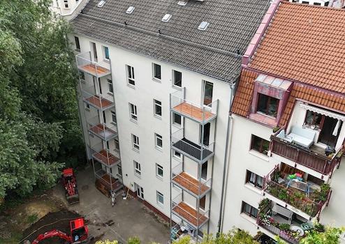 Alle 10 Wohneinheiten sind vermietet und stehen zum Verkauf. Im Juli 2025 wurden an allen Wohnungen Balkone mit einer Größe von ca. 4,30 m² angebaut.