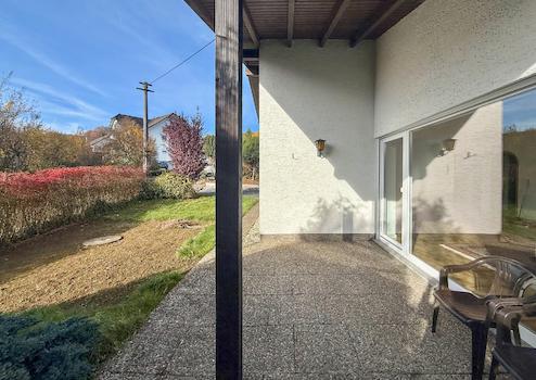Dieser Bungalow aus ca. 1980 befindet sich in einer beliebten, ruhigen Wohnlage von Bad Marienberg. Mit rund 118 m² Wohnfläche eignet er sich ideal für Paare, Senioren oder kleine Familien. Der helle Wohn- /Essbereich mit großer Fensterfront öffnet sich zur überdachten Süd-West-Terrasse und in den pflegeleichten Garten – perfekt für alle, die wenig Aufwand wünschen und dennoch Wert auf eine grüne Außenfläche legen. Neben einem geräumigen Schlafzimmer stehen zwei weitere Zimmer zur Verfügung, nutzbar als Kinder-, Gästezimmer oder Büro. Zwei Tageslichtbäder sorgen für Komfort. Direkt an die Küche schließt sich ein HWR mit Gastherme an, der sich gut für Vorräte oder Haushaltsgeräte eignet. Die Garage ist über einen Nebenflur mit dem Haus verbunden – ideal, um Einkäufe bequem ins Innere zu bringen. Dieser Flur bietet zudem Platz für Schuhe oder Alltagsgegenstände und verfügt über einen Waschmaschinenanschluss. Zusätzlich zur Hauptterrasse steht eine weitere, südöstlich ausgerichtete Terrasse bereit, ergänzt durch einen kleinen gepflasterten Sitzplatz. Der Dachboden, der sich über die gesamte Hausfläche erstreckt, bietet reichlich Stauraum. Die Lage verbindet Ruhe mit Zentrumsnähe: Einkaufsmöglichkeiten, Cafés uvm. sind in wenigen Gehminuten oder mit dem Ato erreichbar!