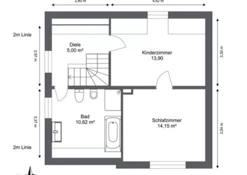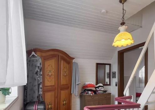 Im Obergeschoss liegen das Hauptbad mit Dusche, Wanne und WC, ein Schlafzimmer sowie ein weiteres Zimmer, das sich gut als Kinder-, Gäste- oder Arbeitszimmer eignet. Der Dachboden bietet zusätzlichen Stauraum.