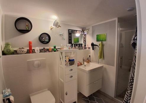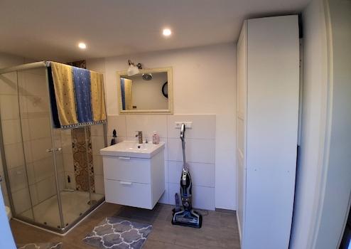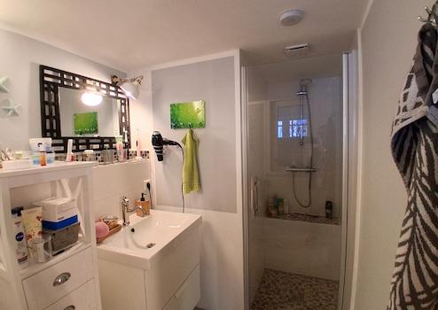 Zwei moderne Bäder sind vorhanden, eines davon im Hofbereich, nahe dem Partyraum.