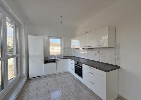 Die bereits vorhandene L-förmige Einbauküche inklusive Geschirrspülmaschine lässt keine Wünsche offen und fügt sich harmonisch in den Raum ein.