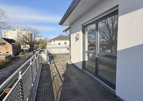 Der offene Wohn-, Ess- und Kochbereich sowie der Flur sind mit hellen Bodenfliesen ausgestattet, die ein freundliches Wohnambiente schaffen. Sowohl vom Wohn- als auch vom Küchenbereich aus betreten Sie die beeindruckende Dachterrasse, die sich großzügig um die gesamte Wohnung erstreckt. Hier stehen Ihnen unzählige Möglichkeiten offen, Ihre ganz persönliche Wohlfühloase zu gestalten – ideal, um sonnige Stunden zu genießen und in Ruhe zu entspannen.