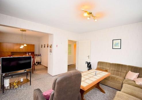 Das geräumige Wohnzimmer bietet ausreichend Platz für gemütliche Abende mit der Familie. Große Fenster lassen viel Tageslicht herein und schaffen eine angenehme Atmosphäre.