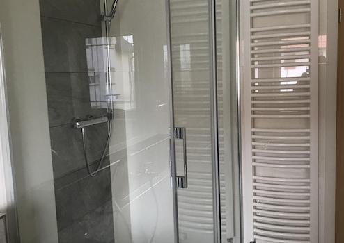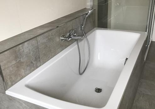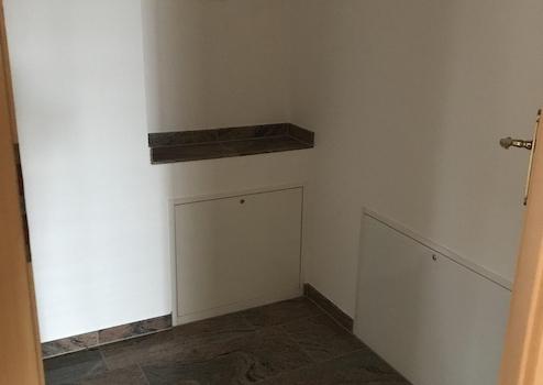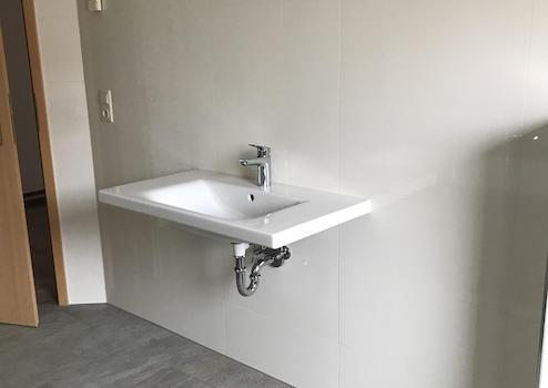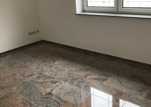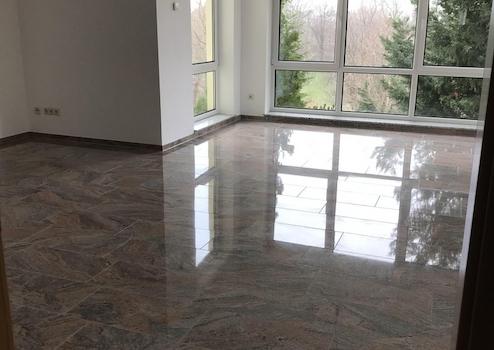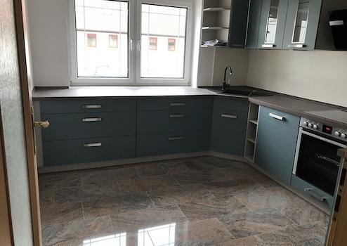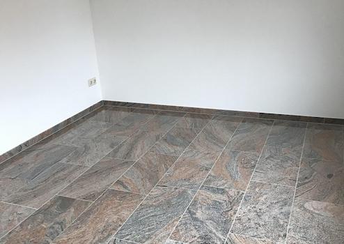 Im Bad der Dachgeschoss-Wohnung, welches mit modernen Fliesen verschönert ist, finden Sie eine große Badewanne, eine Echtglas-Dusche (90x90cm) und einen Waschmaschinen-Anschluss. Angrenzend befindet sich ein kleiner Abstellraum. Vom Wohnzimmer aus mit einem schicken Erker und einer großen Fensterfront hat man einen fantastischen Weitblick in die Natur. In der Küche, dem Abstellraum, Flur und Wohnzimmer wird hochwertiger Granit verlegt. Außerdem finden Sie in der kompletten Wohnung Fußbodenheizung vor. Im Schlafzimmer werden Feinsteinzeugfliesen verlegt und im Kinderzimmer befindet sich Vinyl-Fußboden.