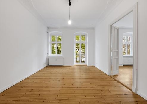 Zwei große Balkone mit Süd und Nord Ausrichtung sind ein weiteres Highlight. Orginale und aufwendig sanierte Stuckelemente, Holzdielen(Orginal) und die für den Berliner Altbau typischen Kassettentüren(Flügeltür zwischen den zwei vorderen Räumen) geben ein rundes Bild ab.