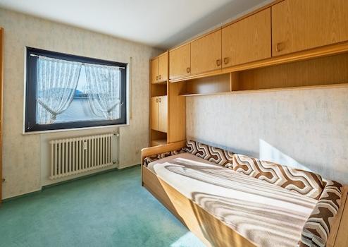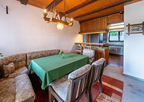 Das Obergeschoss ist seit 1995 an zuverlässige Mieter für 900 € warm vermietet und bietet eine gemütliche, gut geschnittene Wohnung mit viel Charme. Der Wohn- und Essbereich öffnet sich zu einem überdachten Balkon mit traumhaftem Ausblick über die Umgebung – ein Ort, um die Seele baumeln zu lassen. Eine separate Küche, ein Schlafzimmer, ein kleiner Abstellraum (derzeit als Büro genutzt), ein helles Tageslichtbad sowie eine praktische Waschküche/Abstellraum runden diese Einheit ab.