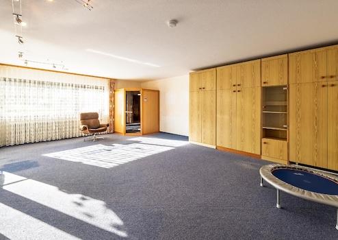 Auch das Untergeschoss bietet mehr, als man auf den ersten Blick erwartet: Hier stehen zusätzliche Wohnräume zur Verfügung, die vielfältig genutzt werden können – ob als Gäste- oder Jugendbereich, Fitnessraum oder privater Wellnessbereich. Neben einem großen Wohn-/Schlafraum befindet sich hier eine Sauna mit vorhandenen Küchenanschlüssen, ein Abstellraum sowie ein Tageslichtbad mit Dusche, WC und Waschbecken. Darüber hinaus gibt es mehrere Kellerräume und den Heizungsraum, die reichlich Stauraum bieten.