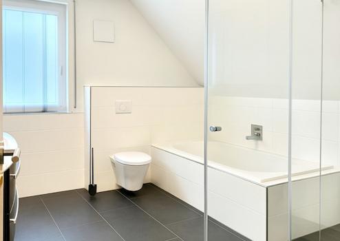 Im Obergeschoss erwarten Sie drei flexibel nutzbare Räume, die sich perfekt als Schlafzimmer, Homeoffice oder Kinderzimmer eignen. Das großzügige Badezimmer beeindruckt mit einer modernen Whirlpoolwanne, einer separaten Dusche sowie hochwertigen Sanitärelementen - ein Rückzugsort, der Komfort und Wellness auf einem Niveau bietet, das überzeugt.