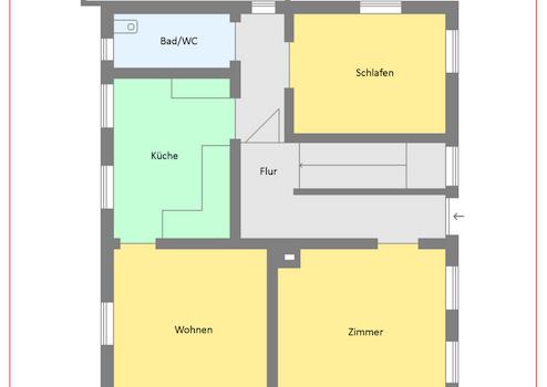 EG: Flur, Zimmer, Küche mit EBK, Wohnzimmer, Bad,