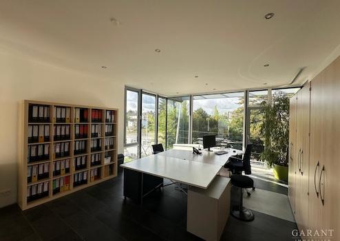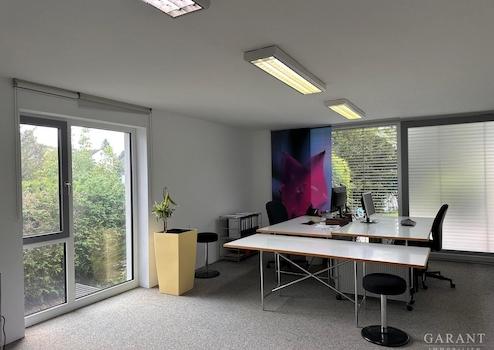 Dieses moderne Wohn-und Bürohaus überzeugt durch klare Linien und hochwertige Ausstattung mit Terrassen und schön angelegtem Garten. Das Gebäude besteht aus drei Einheiten mit separaten ebenerdigen Zugängen, die bei Bedarf auch zusammengelegt werden können.