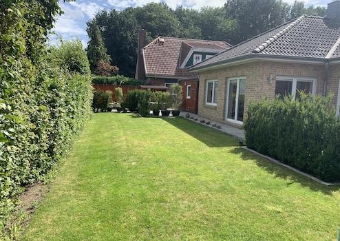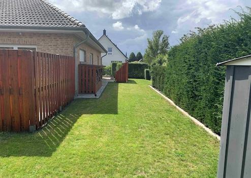 - Großer Garten, Terrasse mit seitlichem Sichtschutz, pflegeleichte Gartenfläche