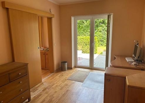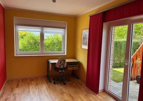 Kinderzimmer (18 qm) mit Doppelverandatür und eigenständiger kleiner Terrasse mit Sichtschutz