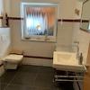 Vollbad (13 qm) mit Dusche, Badewanne, Fenster und Wandheizkörper sowie viel Platz für ein (dauerhaft) aufgestelltes Bügelbrett und 2 (dauerhaft) aufgestellte Wäscheständer (verdeckt hinter der Dusche)