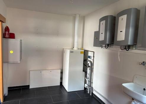 HWR: Elektroanlage, Brötje-Heizung, Fußbodenheizungsanlage, 3 Wechselrichter für die Solaranlage an der Wand, Wandschrank für Telefon, WLAN- und LAN-Installation