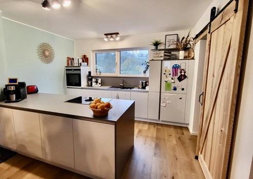 Neben einem offenen Wohn- und Essbereich mit moderner Einbauküche bietet das Haus ein Familienbad, ein zusätzliches Gäste-WC mit Dusche sowie einen großzügigen, vielseitig nutzbaren Raum im Untergeschoss mit bodentiefem Fenster – ideal als Büro, Gäste- oder Hobbyzimmer.