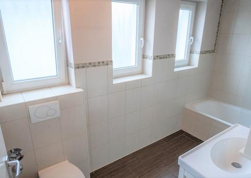 Alle Wohnungen verfügen über Tageslichtbäder, im Erd-/ und Obergeschoss jeweils mit Badewanne, im Dachgeschoss mit Dusche.