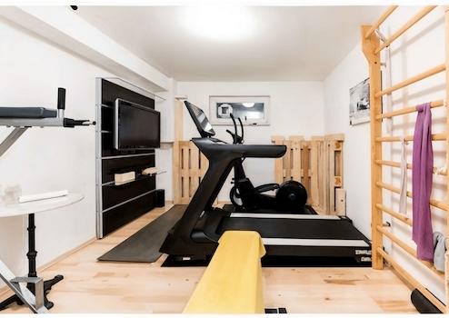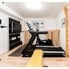 Der Keller des Hauses geht weit über reine Nutzfläche hinaus: Ein vollwertiges Duschbad und ein erstklassig ausgestattetes Home-Gym verlängern das Wellness-Gefühl ins eigene Zuhause.