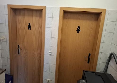 EG: 2 Große Büroräume, Teeküche, sep. Toiletten für Damen/Herren, Lagerfläche/Werkstatt