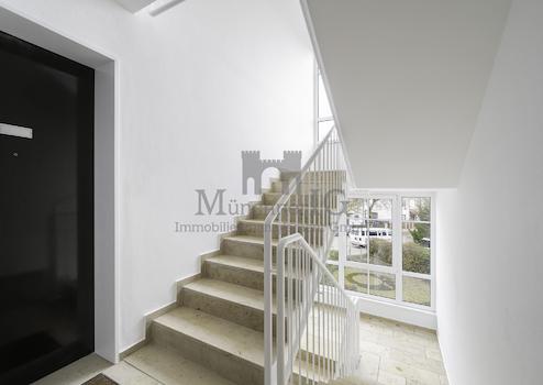 Über das freundliche und helle Treppenhaus erreichen Sie die angebotene Wohnung im zweiten Obergeschoß und es empfängt die moderne Diele mit Platz für Jacken, Taschen und Schuhe. Seitlich geht gleich die Küche ab. Sie bietet Platz für eine Küchenzeile und einen Frühstücksbereich oder alternativ zwei sich gegenüberliegende Zeilen mit Ober- und Unterschränken und aus dem Fenster haben Sie einen schönen Blick ins Grüne. Highlight dieser Wohnung ist der außergewöhnlich geschnittene Wohnbereich, denn dieser teilt sich in zwei Bereiche die über eine Treppe miteinander verbunden sind. Auf der Galerieebene können ein Esstisch und ein Homeoffice eingerichtet werden. Das Eckfenster sorgt für viel Tageslicht. Von der Galerie kann der Blick durch den Raum schweifen und es entsteht ein Loft-Feeling, denn im davor liegenden Wohnbereich haben Sie ca. 3,20m Deckenhöhe. Von hier gelangen Sie auf wettergeschützten Balkon, wo sie am Nachmittag die Sonnenstrahlen verwöhnen. Die Holzdielen sorgen für einen natürlichen Look und Sie haben einen schönen Blick auf die Umgebung.