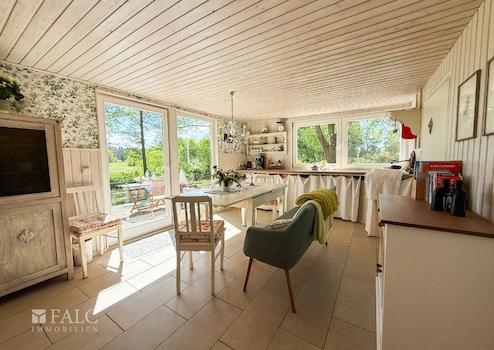Zusätzlich zum Wohnhaus gibt es einen Bootsschuppen, einen praktischen Abstell- und Fahrradschuppen sowie einen Holzunterstand – alles auf dem neusten Stand und perfekt zur Unterbringung von Gartengeräten, Brennholz oder Outdoor-Equipment.