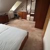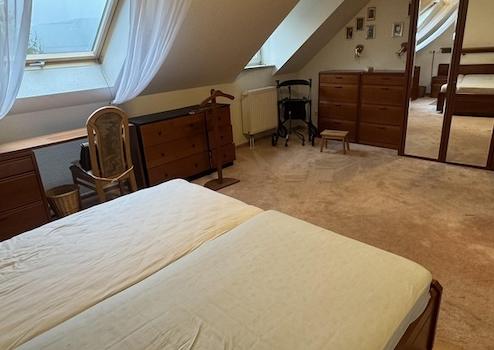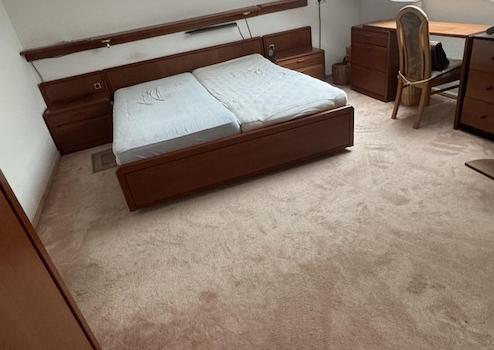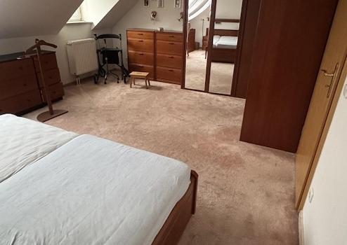 großes Schlafzimmer mit Teppichboden und viel Stellfläche – ideal als Rückzugsort, aktuell als Schlafzimmer genutzt