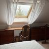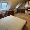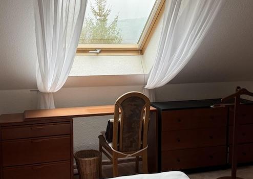 Ausgebauter Spitzboden mit Dachfenster mit Jalousie und Heizkörper