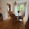 Lounge-, Essbereich mit Zugang zur Terasse mit kleinem Garten an der Hausrückseite
