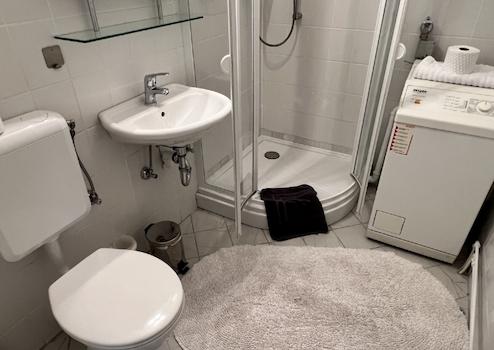 Duschbad mit Waschmaschine (Toplader Miele),
