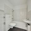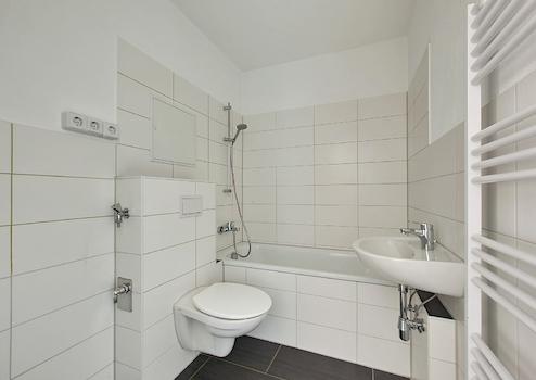- modern gefliestes Wannenbad mit praktischen Handtuchheizkörper & Waschmaschinenanschluss
