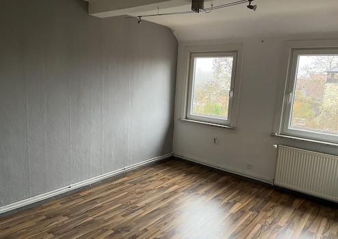- Dachgeschoss, Wohneinheit 3: Fenster nur einfachverglast, textiler Belag in Kinderzimmer, Wohnzimmer, Schlafzimmer und Küche. WC und Dusche befinden sich eine halbe Treppe unterhalb in Dielung. Gastherme (Baujahr 2022).