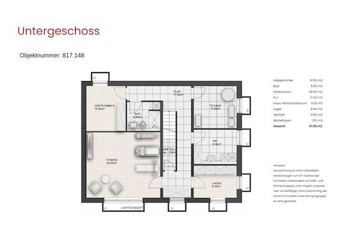 Das helle, wohnwertig ausgebaute Untergeschoss erweitert den Lebensraum um wertvolle Quadratmeter. Ein großzügiger Raum mit fast 30 qm und großen Fensterflächen eignet sich ideal als Fitnessstudio oder Heimkino. Ein weiteres Bad, Gästezimmer sowie Technik- und Hauswirtschaftsraum runden das Raumangebot ab. Fitnessraum, und Gästebereich zählen mit der Hälfte der Grundfläche zur Wohnfläche.