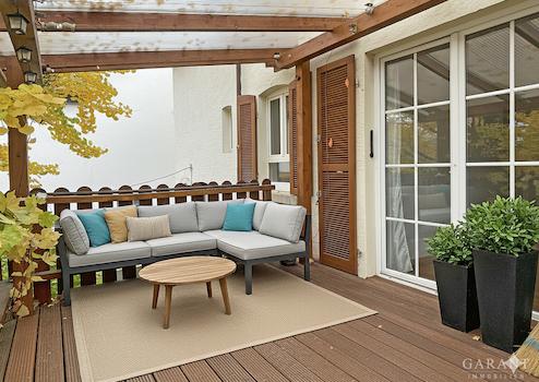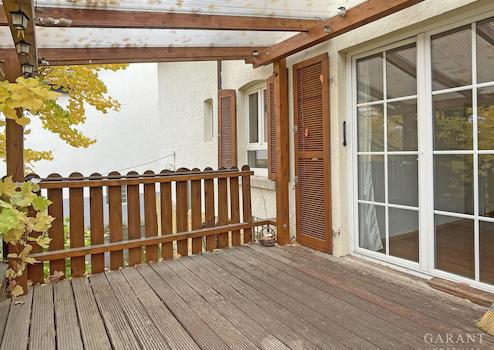 Vom Esszimmer gelangen Sie auf die überdachte Terrasse mit Zugang in den grünen, wenig einsehbaren Garten - ideal zum Entspannen.