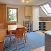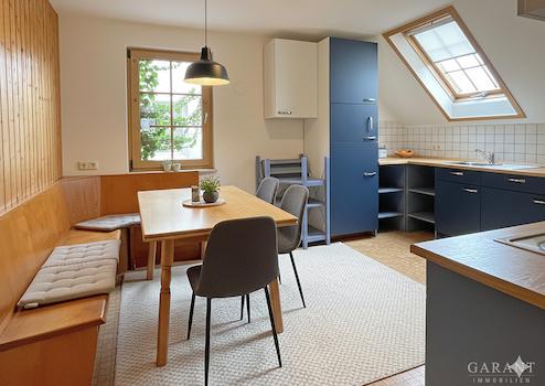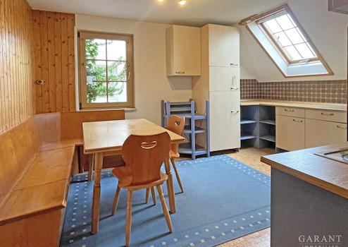 Im Obergeschoss erwarten Sie eine große Küche mit Essbereich, ein helles Wohnzimmer mit Aufgang zum oberen Zimmer sowie ein Tageslichtbad mit Dusche und ein Gäste-WC. Das obere Zimmer überzeugt mit großen Nordfenstern und besonderem Charme.