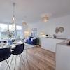 Zusammen ergibt sich eine offene Wohnsituation, bei der Kochen, Essen und Wohnen ineinander übergehen – eine moderne Raumaufteilung, die sich als Symbiose für ein attraktives Leben zu Hause darstellt.