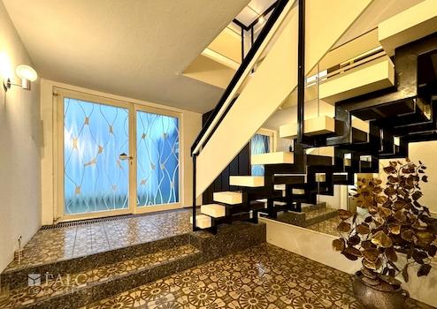 Die offene Treppenanlage, die klaren Linien und die großzügigen Raumfolgen zeigen deutlich, welch hochwertiges Wohnkonzept hier bereits in den 1970er Jahren umgesetzt wurde. Die Substanz ist hervorragend, die Weite der Räume außergewöhnlich. Moderne Akzente lassen sich mühelos integrieren, ohne die architektonische Qualität zu zerstören.