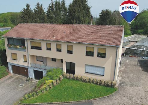 Angeboten wird ein freistehendes 2-Familien-Haus mit mehreren Garagen im und ums Haus.